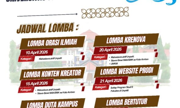 AMBON,DM.COM,-Peringati Dies Natalis Universitas Pattimura (Unpatti) ke 63, pihak panitia menetapkan sejumlah mata lomba. Lomba yang digelar selama dua minggu kedepan melibatkan mahasiswa aktif kampus terbesar...