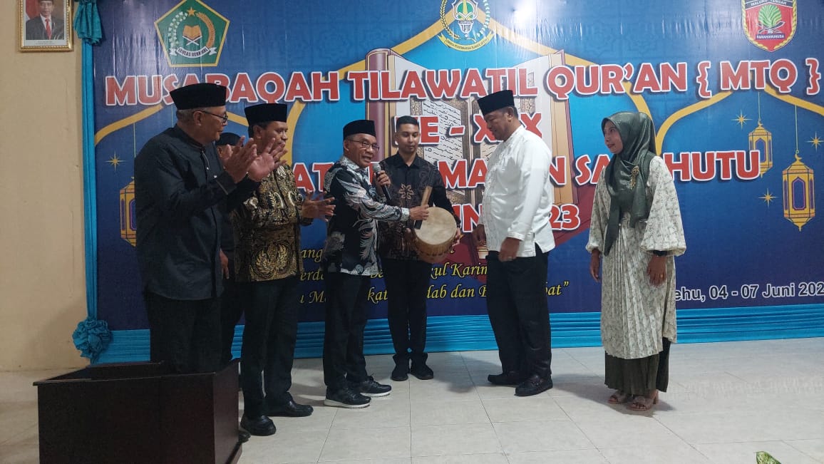 MTQ yang melombakan delapan mata lomba, mengambil sorotan tema”Membangun Genersi Qur’an Yang Cerdas dan Berakhlakul Karima Menuju Masyarakat Beradab dan Bermartabat’ secara resmi dibuka penjabat Bupati Maluku Tengah (Malteng), Muhamat Marasabessy, ditandai pemukulan tipa yang sebelulmnya melantik dan pengembilan sumpah 22 dewan juri dsn panitra, berlangsung di aula Madrasah Tsanawiyah (MTs) Negeri 5 Malteng, Minggu(4/6/2023)