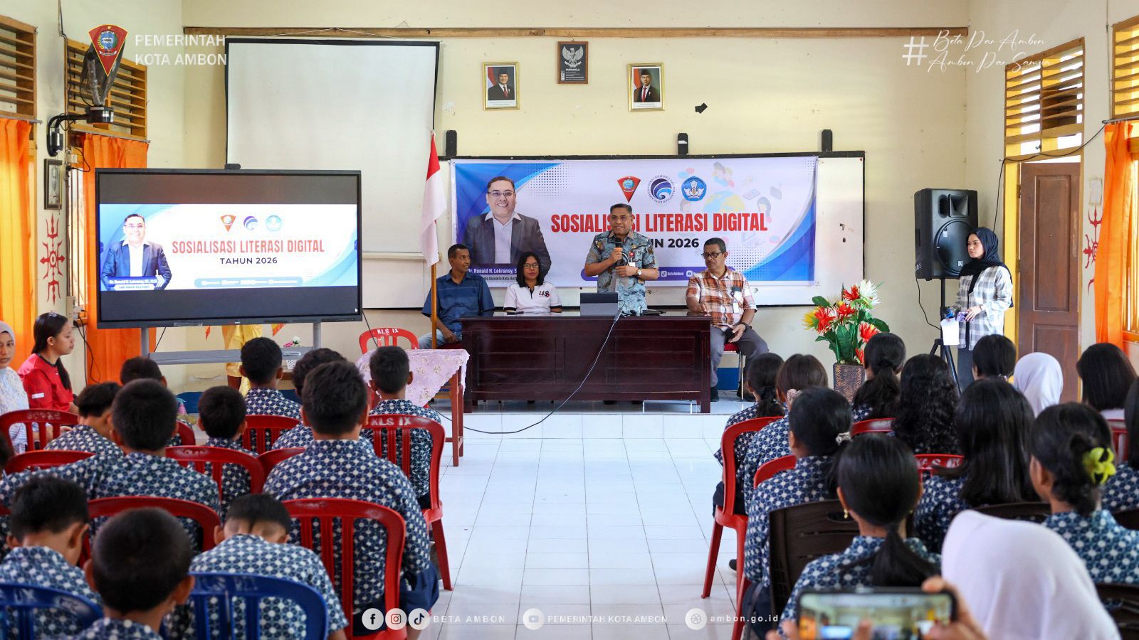 AMBON, DM.COM,– Pemerintah Kota Ambon, melalui Dinas Komunikasi, Informatika dan Persandian (Diskominfo) menggelar kegiatan Sosialisasi Literasi Digital bagi para siswa di SMP Negeri 6 Ambon, Jumat (13/2/26).