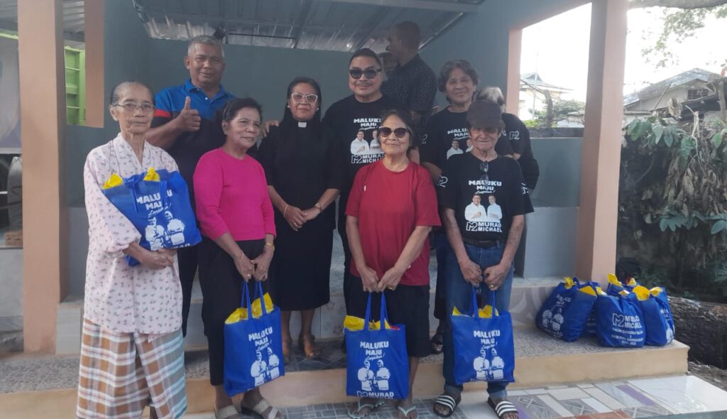 AMBON,DM.COM,-Bakal calon Wakil Gubernur Maluku, Michael Wattimena, menghadiri syukuran pembangunan pangkalan ojek dan berbagi kasih kepada para janda dan duda di lorong Coker, Kelurahan Kudamati, Kecamatan Nusaniwe, Kota Ambon, Senin (16/9/2024).
