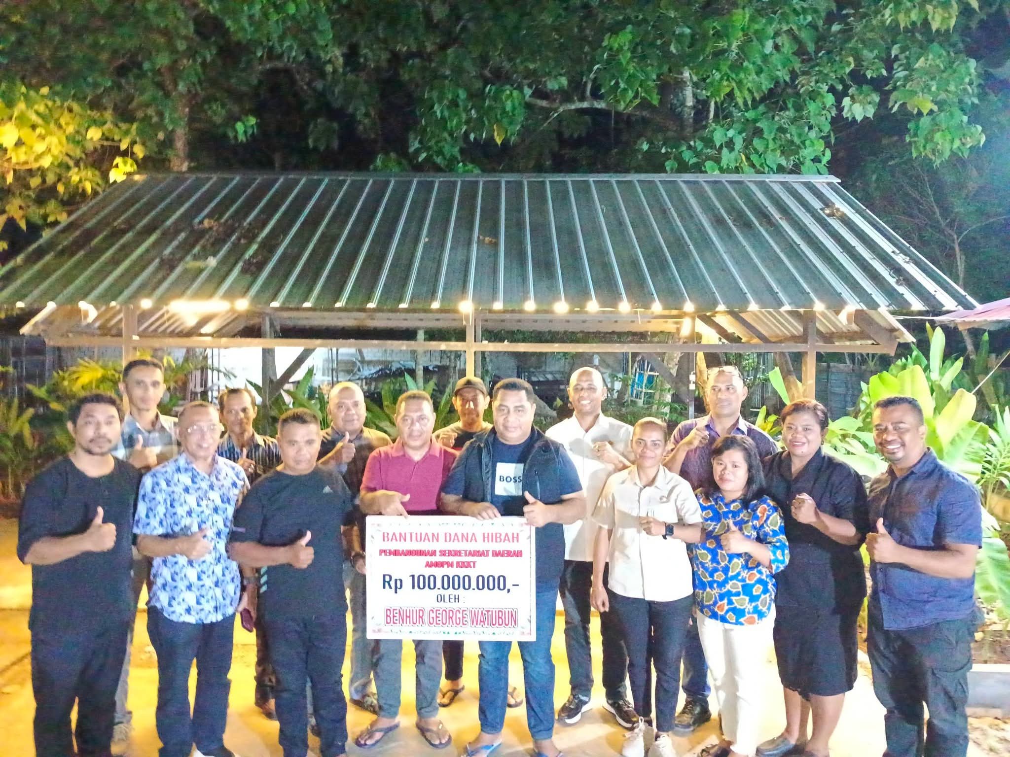 Selain berdiskusi menyerap aspirasi, Watubun akrab disapa BGW yang juga kader AMGPM menyerahkan bantuan dana senilai Rp 100 juta untuk kelanjutan pembangunan gedung Sekretariat AMGPM PP Kei Kecil dan Kota Tual, Jumat (13/3/2026).