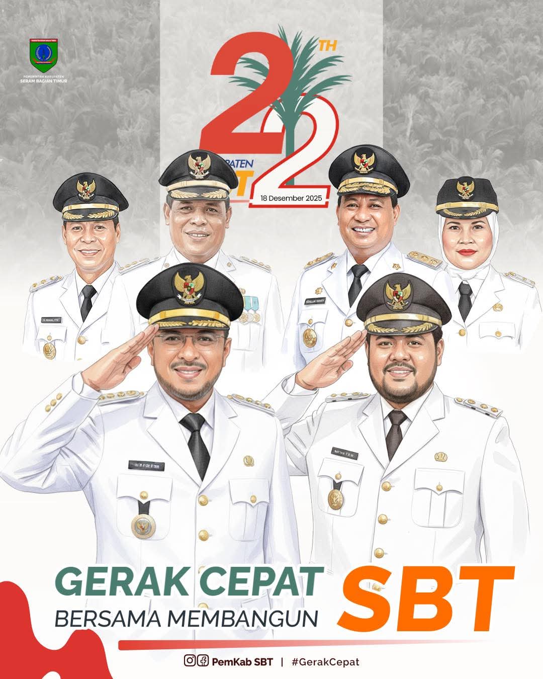 “Sebuah perjalanan panjang dari 18 Desember 2003 ke 18 Desember 2025 adalah bukti cinta dan perjuangan generasi ke generasi untuk ‘Ita Wotu Nusa’ yang lebih baik. Selamat HUT SBT ke 22 tahun, Gerak Cepat Bersama Bangun SBT,”harapnya.
