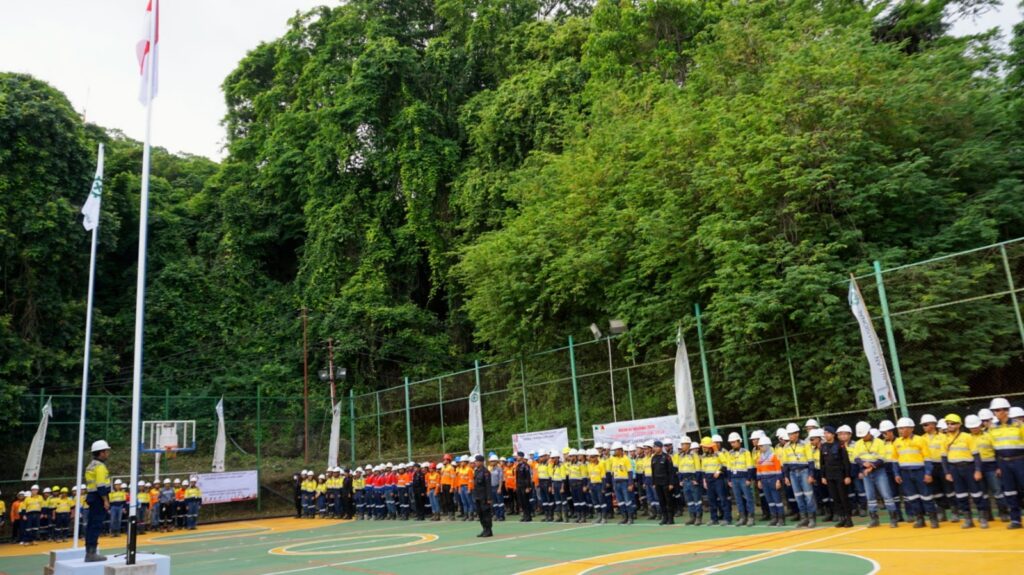 Seratus lebih karyawan dari anak usaha Merdeka Copper Gold itu hadir dalam upacara, mewakili segenap karyawan lain yang berjumlah hampir dua ribu orang. Plt. Pjs. Kepala Teknik Tambang (KTT) Rudi Prabowo bertindak sebagai inspektur upacara.