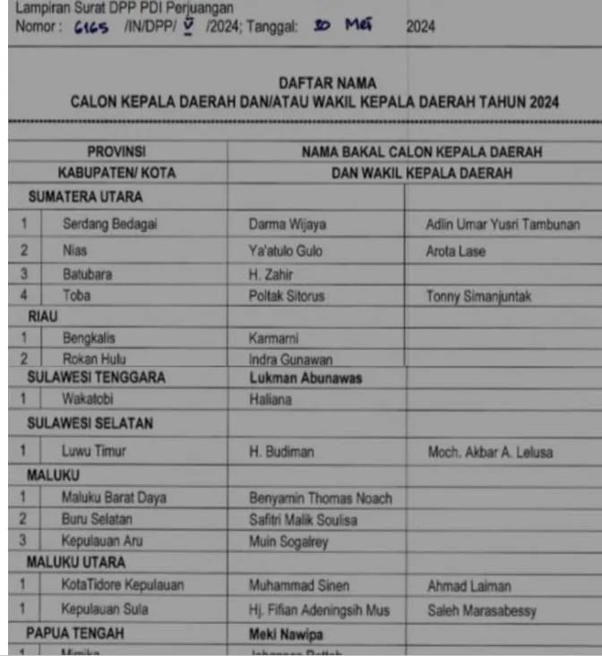 Sesuai surat DPP PDIP, yang diperoleh DINAMIKAMALUKU.COM, Sabtu (1/6/2024) tim pemenangan BTN dan dua calon Bupati lainya diundang setelah mereka diklaim telah diusung PDIP, bertarung merebut kursi Bupati didaerahnya.