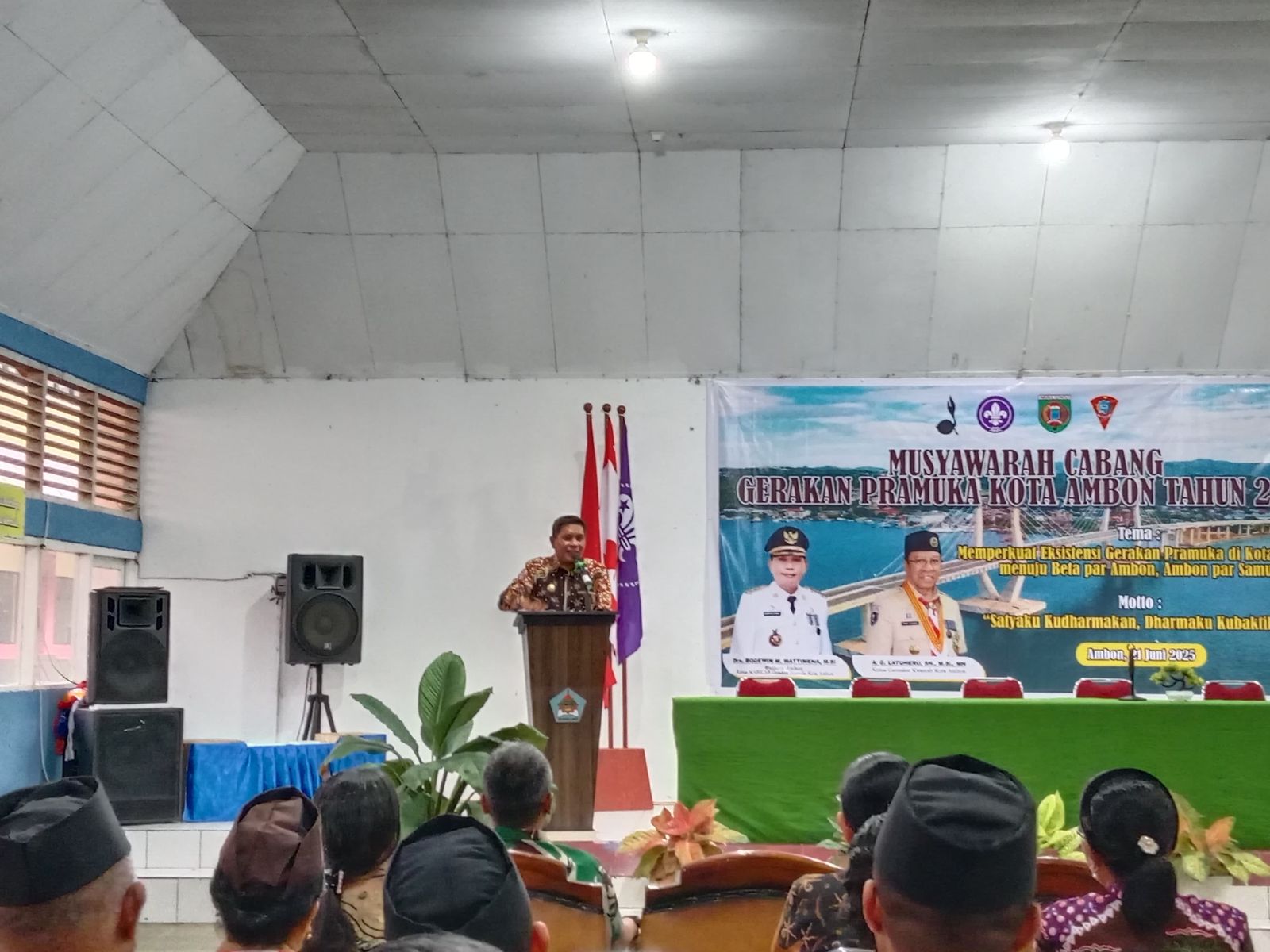 Harapan Walikota ketika didampingi Karateker Kwartirmembuka musyawarah cabang (Muscab) gerakan Pramuka Kota Ambon tahun 2025 di SMK 4 Ambon, Sabtu (21/6/2025)
