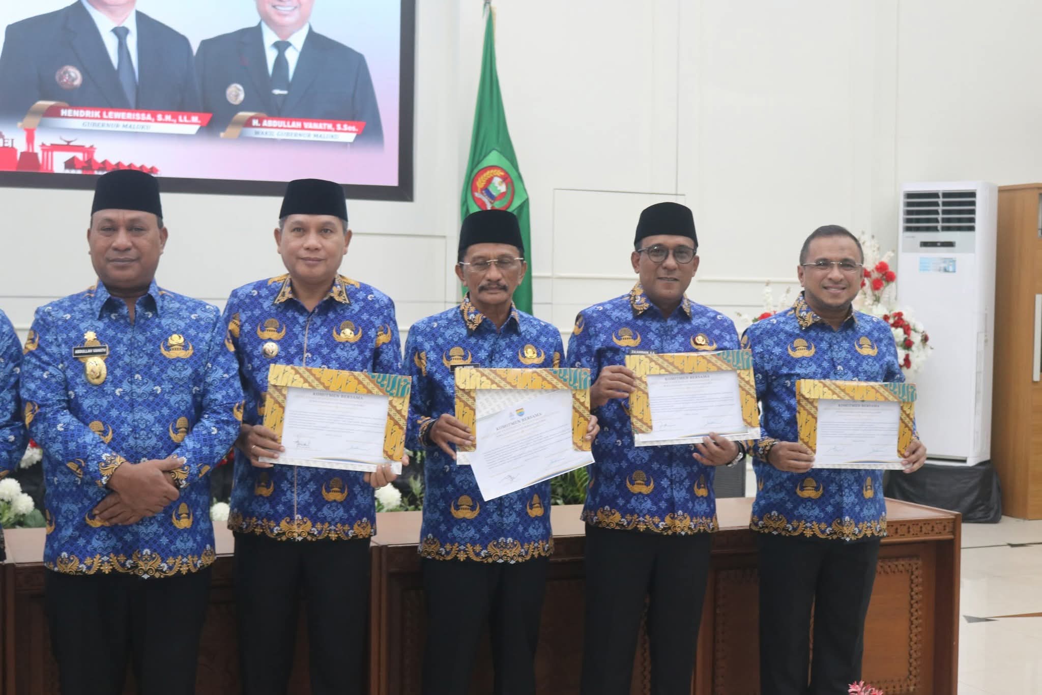 AMBON, DM.COM,-Bupati Seram Bagian Timur (SBT), Fachri Husni Alkatiri, bersama sejumlah Bupati dan Walikota se Maluku, melakukan Penandatanganan Komitmen Manajemen Talenta, Pemberian Penghargaan Pelaksanaan Seleksi Calon Aparatur Sipil Negara Secara CAT Mandiri, secara resmi dibuka oleh Wakil Gubernur Maluku H. Abdullah Vanath, yang digelar di Aula lantai 7 Kantor Gubernur Maluku, Selasa (8/7/2025).