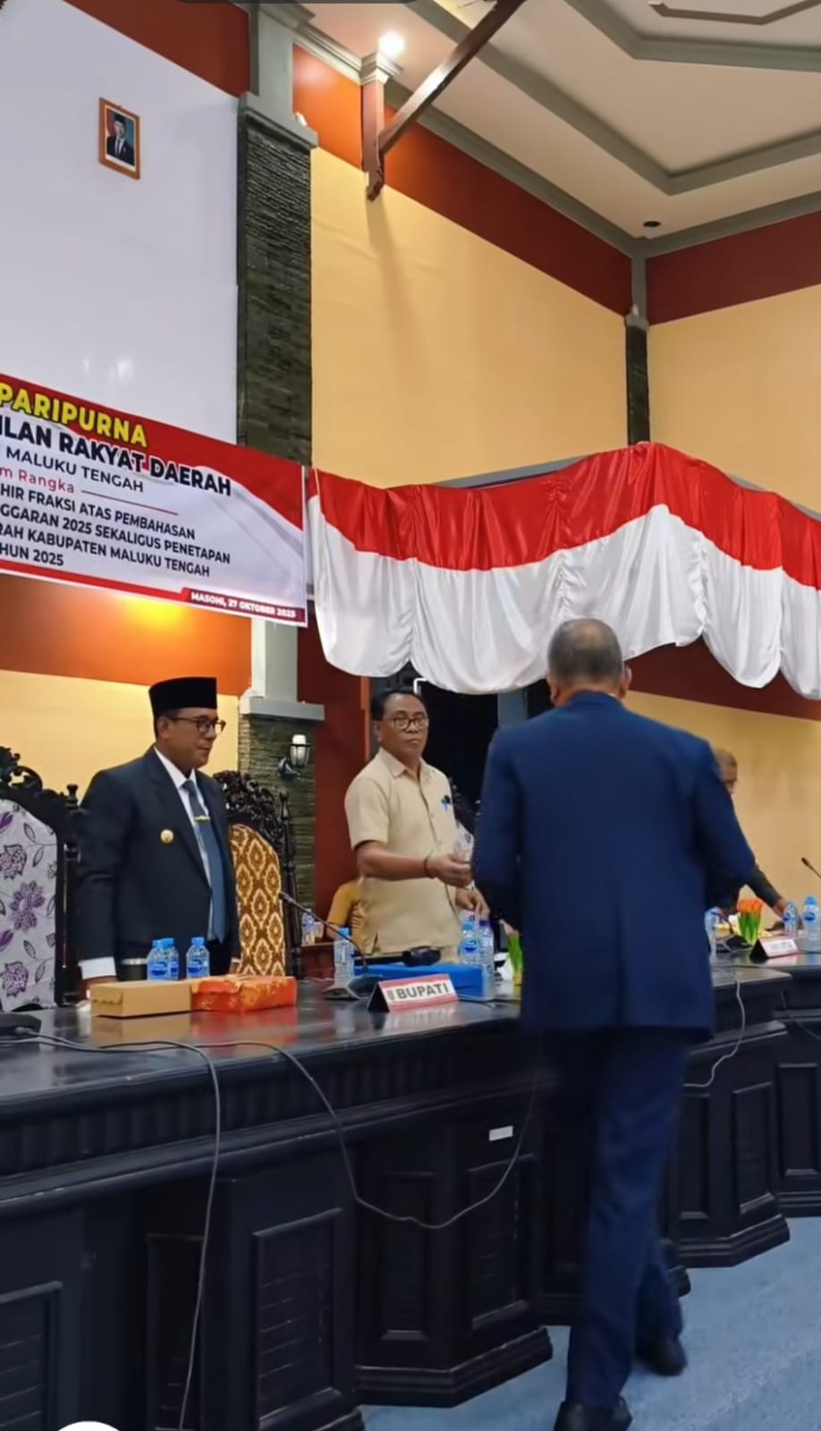 AMBON,DM.COM,- Bupati Maluku Tengah (Malteng), Zulkarnain Awat Amir, menghadiri rapat Paripurna DPRD Mateng. Rapat digelar di ruang paripurna lembaga politik itu, Senin (27/10/2025).