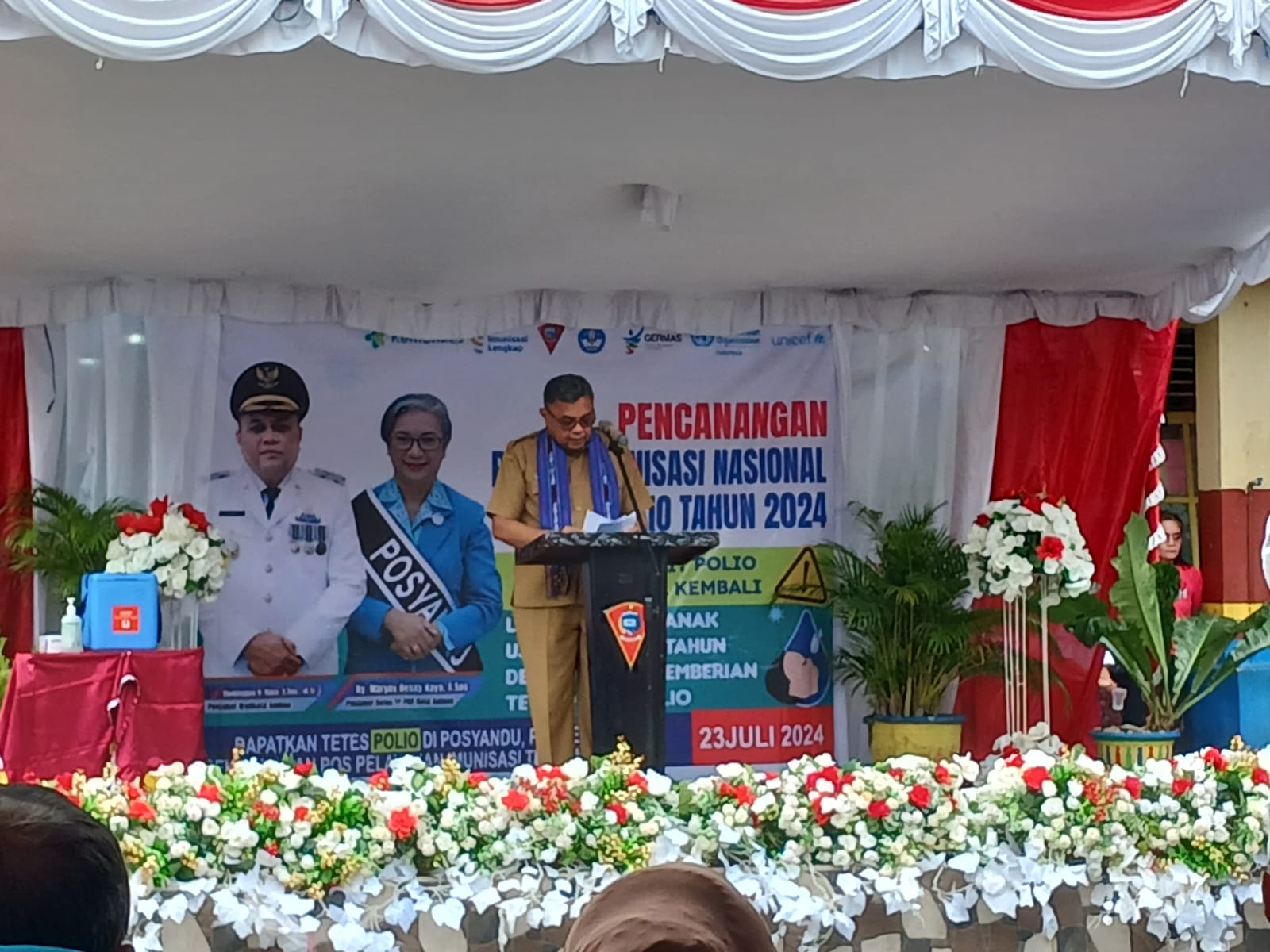 “Hari ini, kita melaksanakan pencanangan Pekan Imunisasi Polio secara serentak, karena Polio sangat berbahaya. Anak-anak kita berdampak sangat serius, sehingga menyebakan kelumpuhan secara permanen dan belum ada obatnya,”kata Pj Walikota.