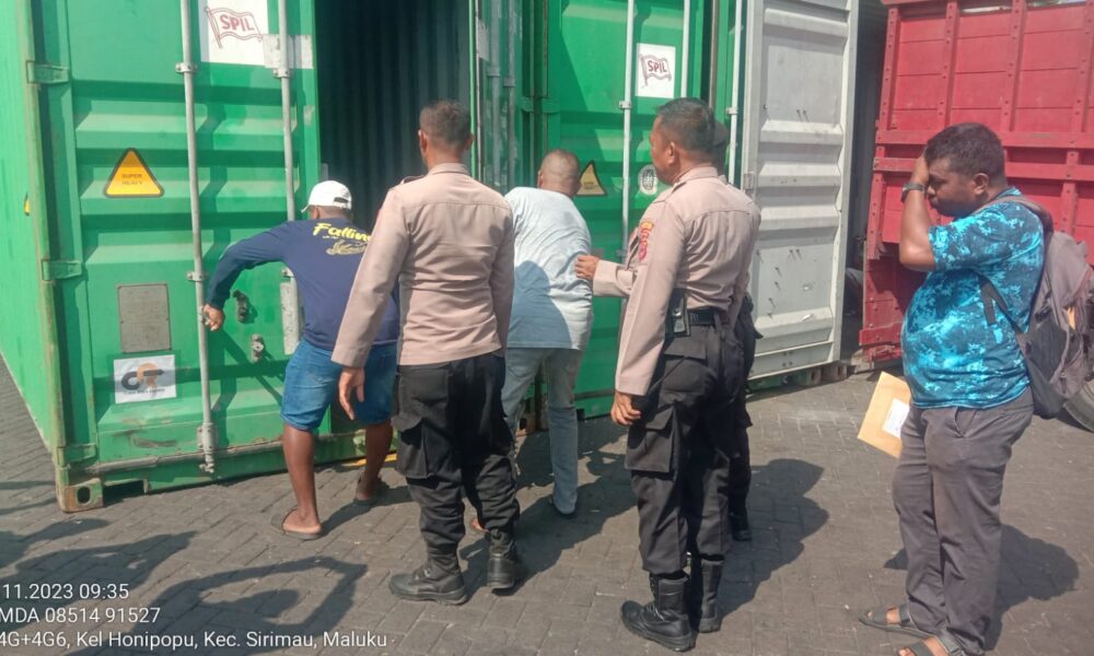 AMBON,DM.COM,-Aparat kepolisian terus mengawal proses pendistribusian bilik suara pemilu tahun 2024.Pengawalan dilakukan, Sabtu (11/11/2023) di Lapangan Pembongkaran Kontener Pelabuhan Yos Sudarso Ambon mulai dari Pendistribusian isi...