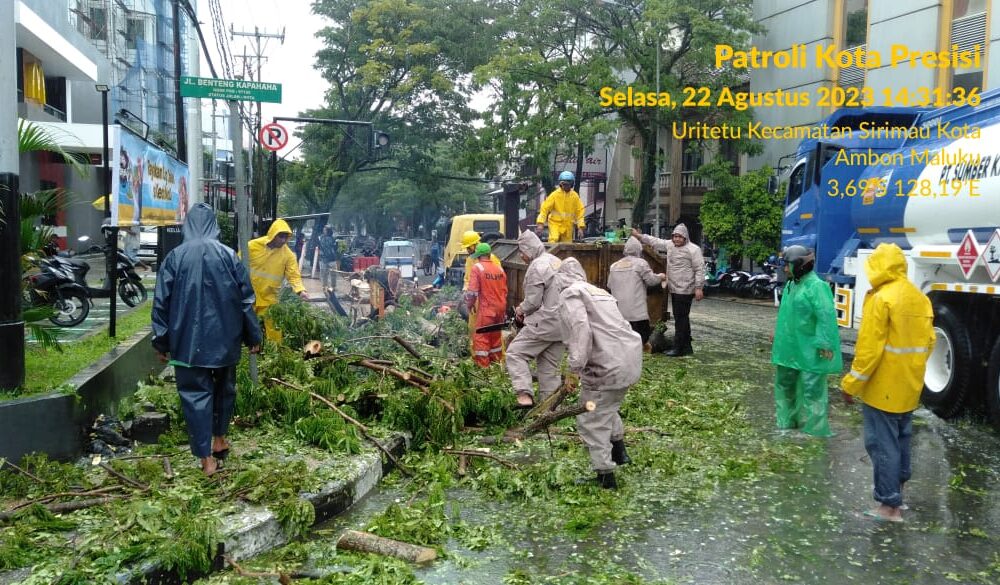 AMBON,DM.COM,-Curah hujan tinggi disertai angin, menyebabkan satu pohon tumbang di depan Hotel Ambon Manise atau Amans, Selasa (22/8/2023). Tidak ada korban jiwa, namun satu Becak yang...