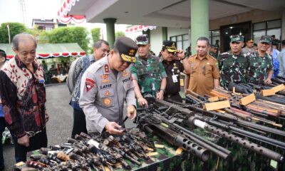AMBON,DM.COM,-Kepala Kepolisian Daerah Maluku Irjen Pol Lotharia Latif, menghadiri kegiatan pemusnahan senjata api rakitan yang digelar oleh Kodam XVI/Pattimura, Senin (7/8/2023). Pemusnahan senpi rakitan hasil temuan...