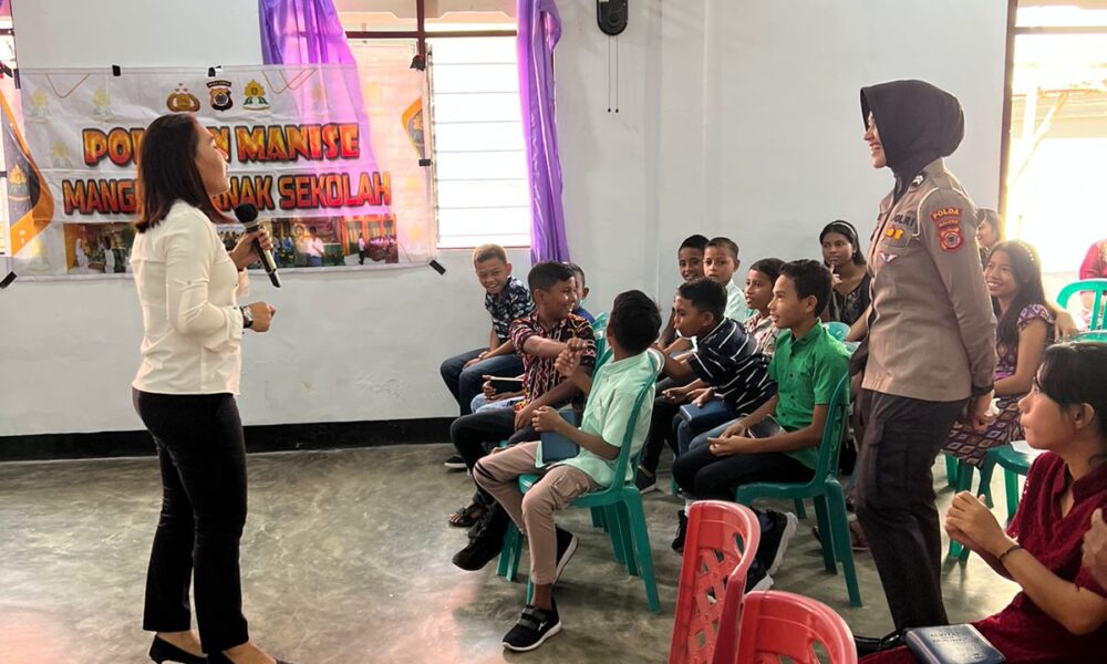 AMBON,DM.COM,-Kepolisan Wanita (Polwan) Polda Maluku mengunjungi anak-anak di sekolah minggu yang bertempat di gedung Gereja Sola Scriptura Suli Atas, Kecamatan Salahutu, Kabupaten Maluku Tengah, Minggu (16/7/2023)....
