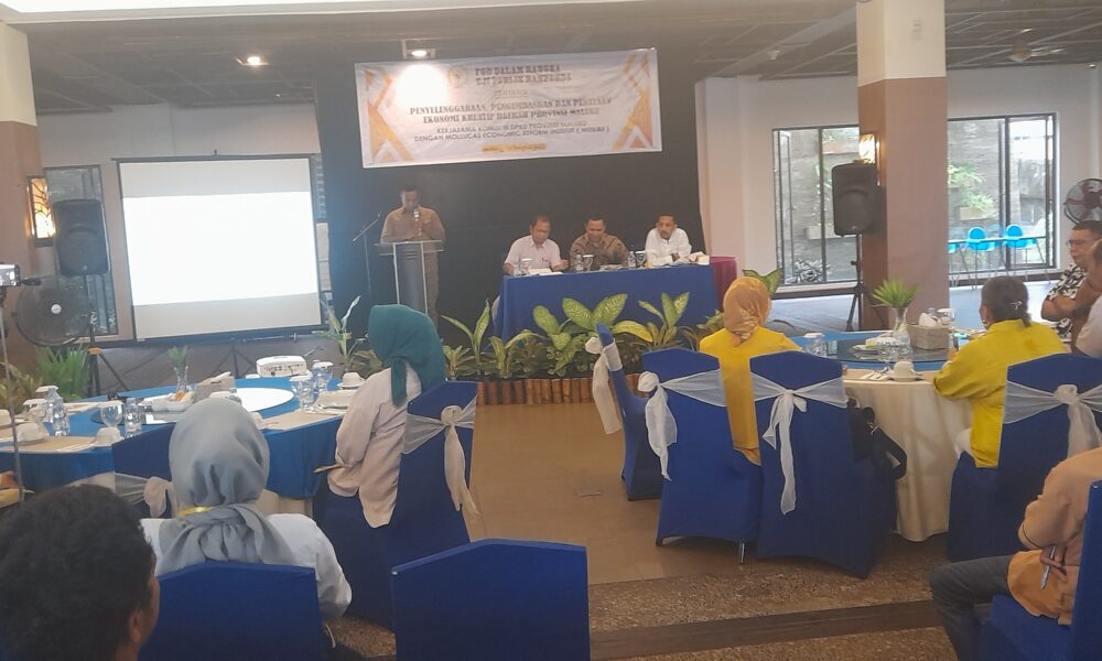 AMBON,DM.COM,-Komisi III DPRD Maluku menggelar Fokus Group Discussion (FGD) Pengembangan Ekonomi Kreatif Daerah provinsi Maluku melibatkan Mollucas Economic Reform Institut di The Natsepa hotel Sabtu (14/10/2023)....