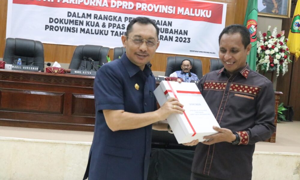 AMBON,DM.COM, – Pemerintah Provinsi Maluku, akhirnya menyerahkan dokumen Kebijakan Umum Anggaran (KUA) dan Prioritas Platfon Anggaran Sementara (PPAS) APBD Perubahan Tahun Anggaran (TA) 2023 ke DPRD...