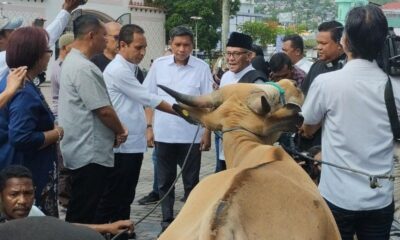 AMBON,DM.COM, Wakil ketua DPRD Maluku, Melkianus Sairdekut, mewakili pimpinan DPRD Provinsi Maluku, menyerahkan satu ekor sapi Qurban. Proses penyerahan sapi Qurban untuk perayaan Idhul Adha 1444...