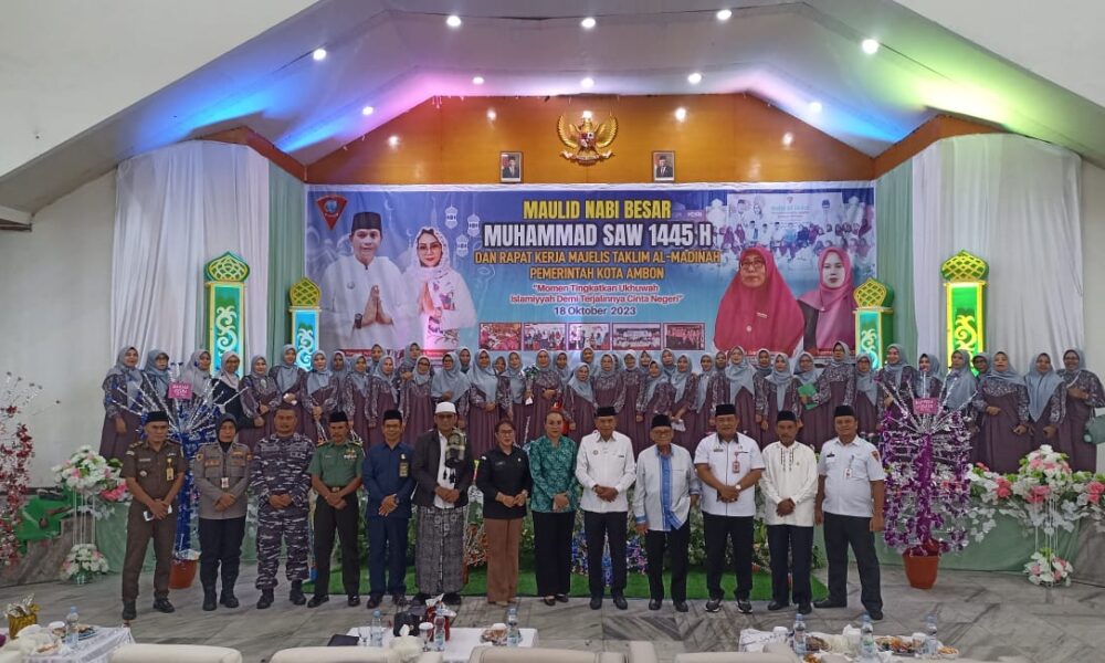 AMBON,DM.COM,-Penjabat (Pj) Walikota Ambon, Bodewin Wattimena, menghadiri perayaan Maulid Nabi Muhammad SAW yang digelar Majelis Taklim Al-Madinah Pemerintah Kota Ambon di gedung Ashari, Rabu (18/10/2023). Pj...
