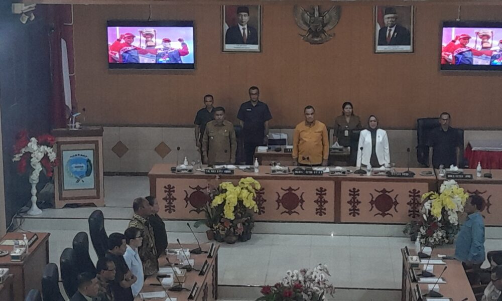 AMBON,DM.COM,-Penjabat (Pj) Walikota Ambon, Bodewin Wattimena menyampaikan pidato pada rapat paripurna rancangan peraturan daerah (Ranperda) Pelaksanaan APBD Tahun Anggaran 2022 di DPRD Kota Ambon, Senin (3/7/2023)....