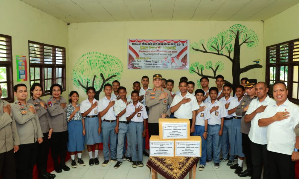 AMBON,DM.COM,-Untuk mensukseskan program Polri Peduli Budaya Literasi Distribusi Buku sampai ke Pelosok Nusantara, Kapolresta Pulau Ambon dan Pulau-pulau Lease, bagi 100 literasi buku ke Siswa SMA...