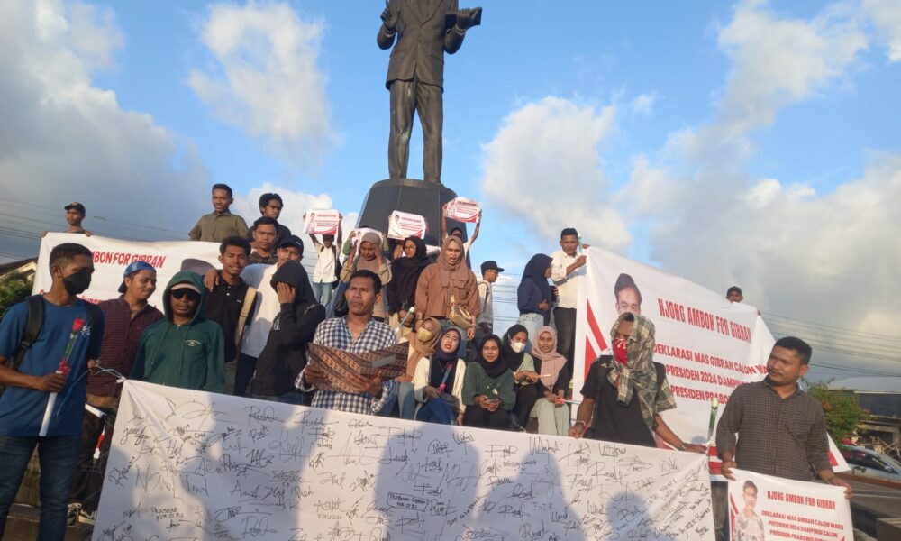 AMBON,DM.COM,-Sejumlah elemen pemuda di Kota Ambon, Provinsi Maluku, mengatasnamakan diri Njong Ambon, deklarasi dukungan terhadap Mas Gibran Rakabuming, mendampingi Calon Presiden Prabowo Subianto, sebagai bakal calon...