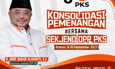 AMBON, DM.COM,-Sekretaris Jenderal (Sekjen) Partai Keadilan Sejahtera (PKS) Habib Aboe Bakar Alhabsyi direncanakan berkunjung ke Kota Ambon, Minggu (10/9/2023). Habib akan menghadiri kegiatan konsolidasi pemenangan DPW...