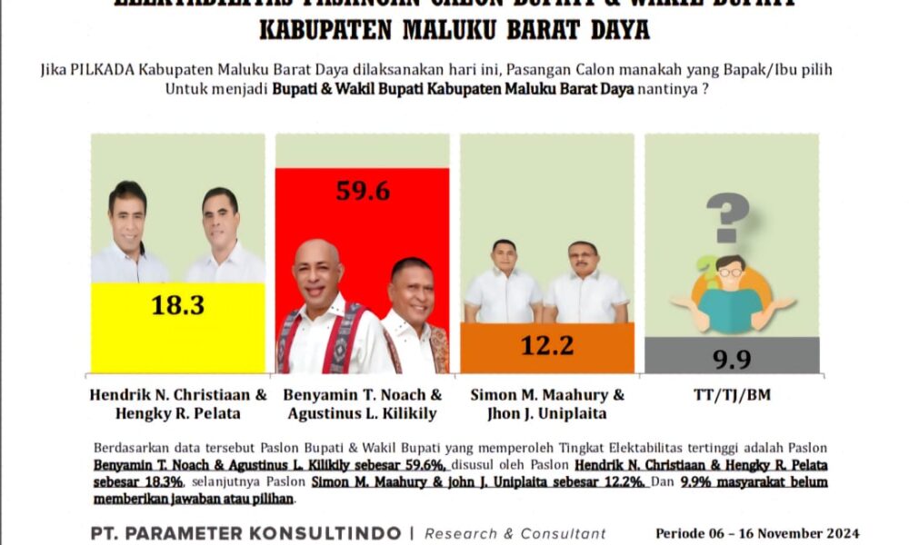 TIAKUR, DM.COM,-Pasangan petahana, Benyamin Thomas Noach dan Agustinus Lekwardai Kilikily, sebagaimana diprediksi sejumlah kalangan, bakal kembali terpilih memimpin Kabupaten Maluku Barat Daya (MBD), bakal terwujud. Sebelumnya,...