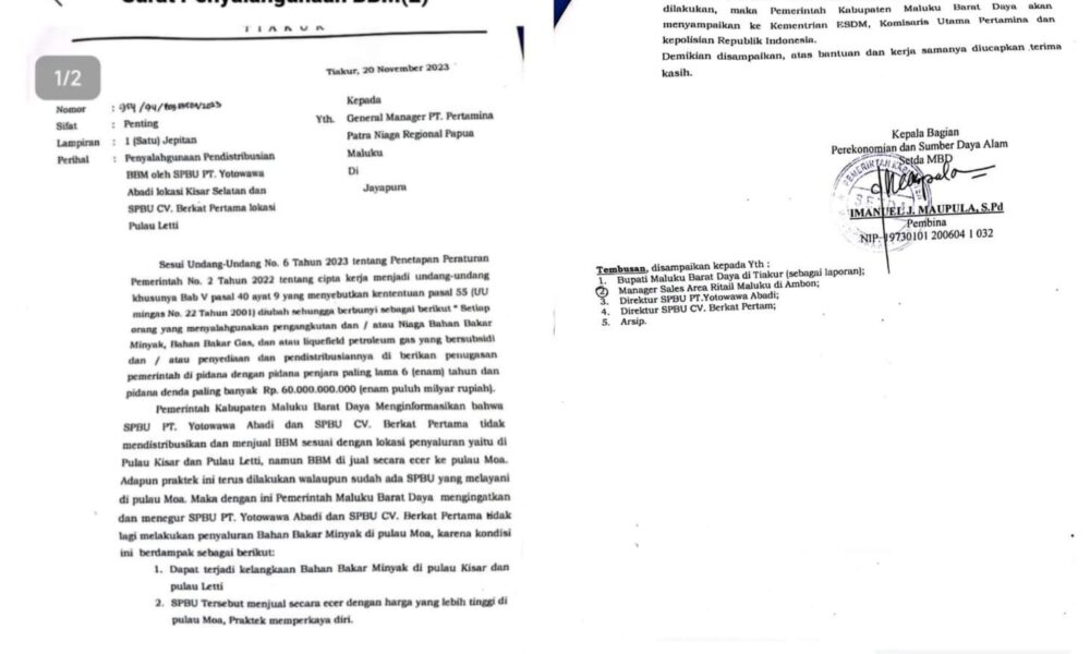 AMBON,DM.COM,-Kelangkaan Bahan Bakar Minyak (BBM) di Pulau Moa, Kabupaten Maluku Barat Daya (MBD), tak hanya kebijakan Bupati setempat, Benjamin Thomas Noach, namun karena dua Stasiun Pengisian...
