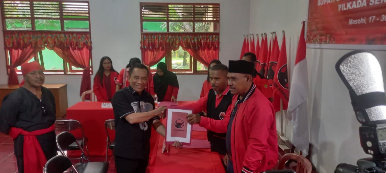AMBON,DM.COM,-Mantan Penjabat Bupati Maluku Tengah (Malteng), Muhamat Marasabessy, secara resmi mengembalikan formulir pendaftaran Bupati Malteng di DPC PDIP dan DPC Gerindra Malteng, Selasa (30/4/2024).