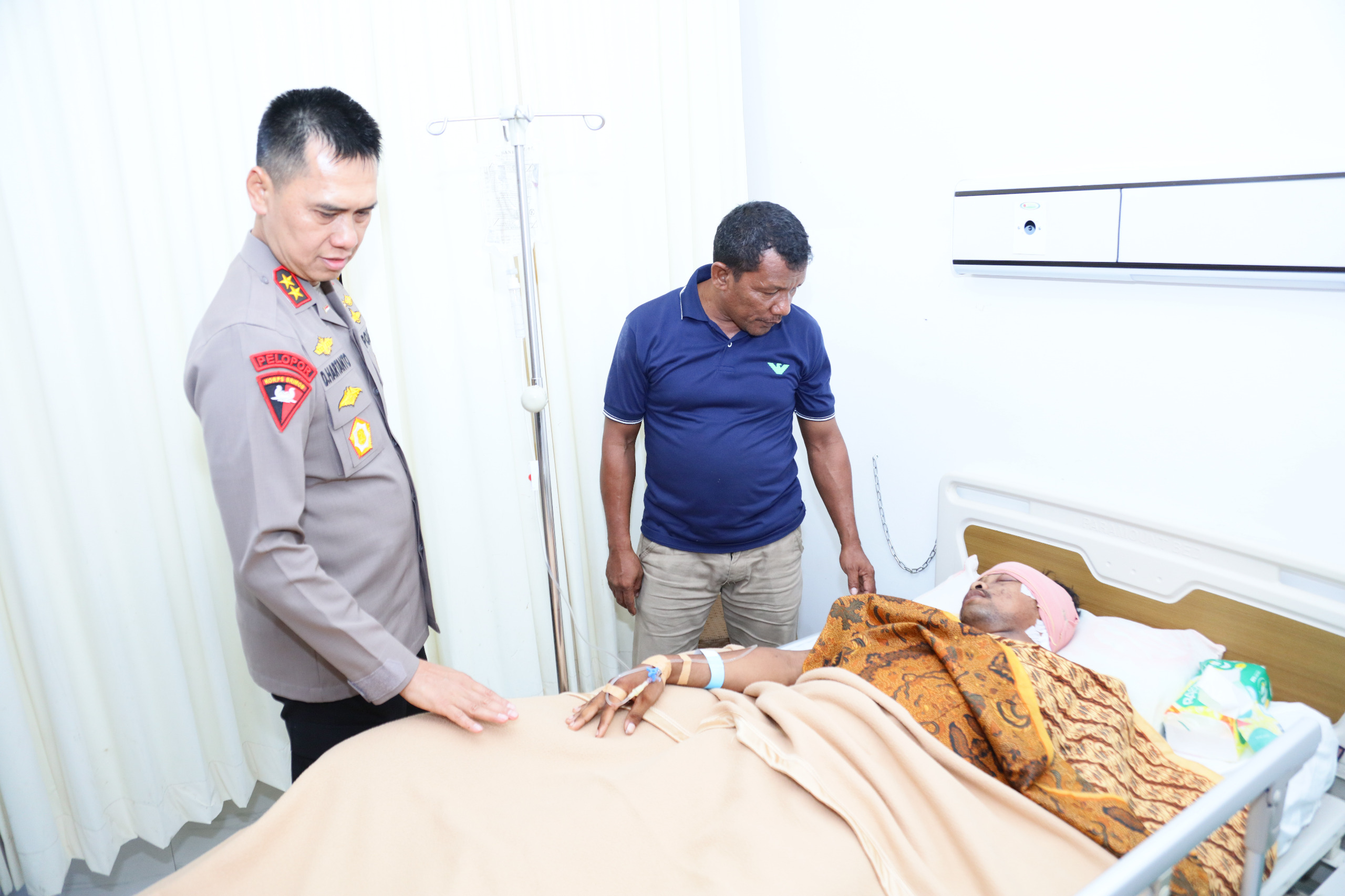 AMBON,DM.COM,— Kepala Kepolisian Daerah (Kapolda) Maluku, Irjen Pol Prof. Dr. Dadang Hartanto, S.H., S.I.K., M.Si., menjenguk korban penganiayaan di kawasan Lorong Putri, Desa Batu Merah, Ambon, yang saat ini menjalani perawatan intensif di Rumah Sakit Bhayangkara Polda Maluku, Tantui, Ambon.