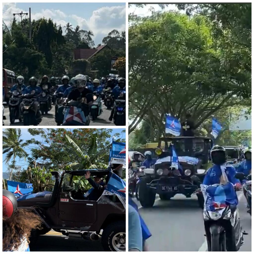 Usai dikalungi bunga, BMW diarak menggunakan puluhan mobil dan ratusan motor, mengelilingi sejumlah ruas jalan utama di Kota Ambon.”Hidup BMW. Satu kursi DPR untuk BMW. BMW sudah berbuat banyak untuk Maluku. Sudah teruji. Mari katong pilih BMW,”teriak pendukung BMW mengajak warga.