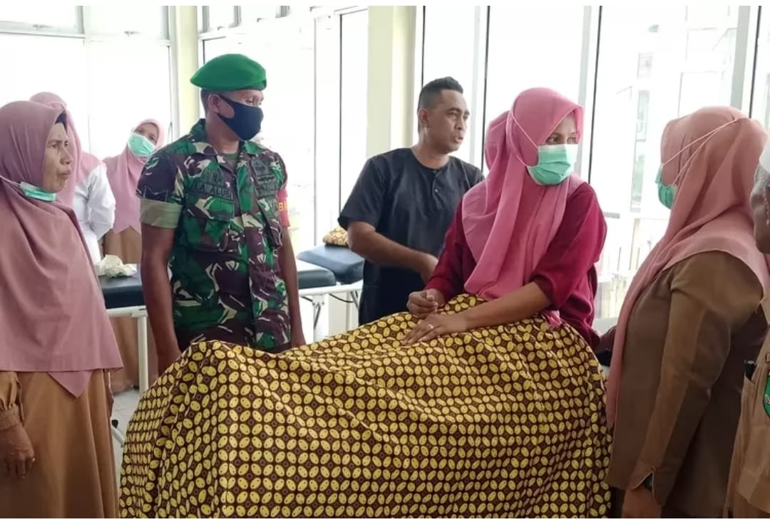 Kegiatan pelayanan Keluarga Bencana (KB) dalam rangka momentum manunggal TNI bangga kencana kesehatan terpadu itu diselenggarakan di Puskesmas Waru Kecamatan Teluk Waru, Senin (22/5/2023).