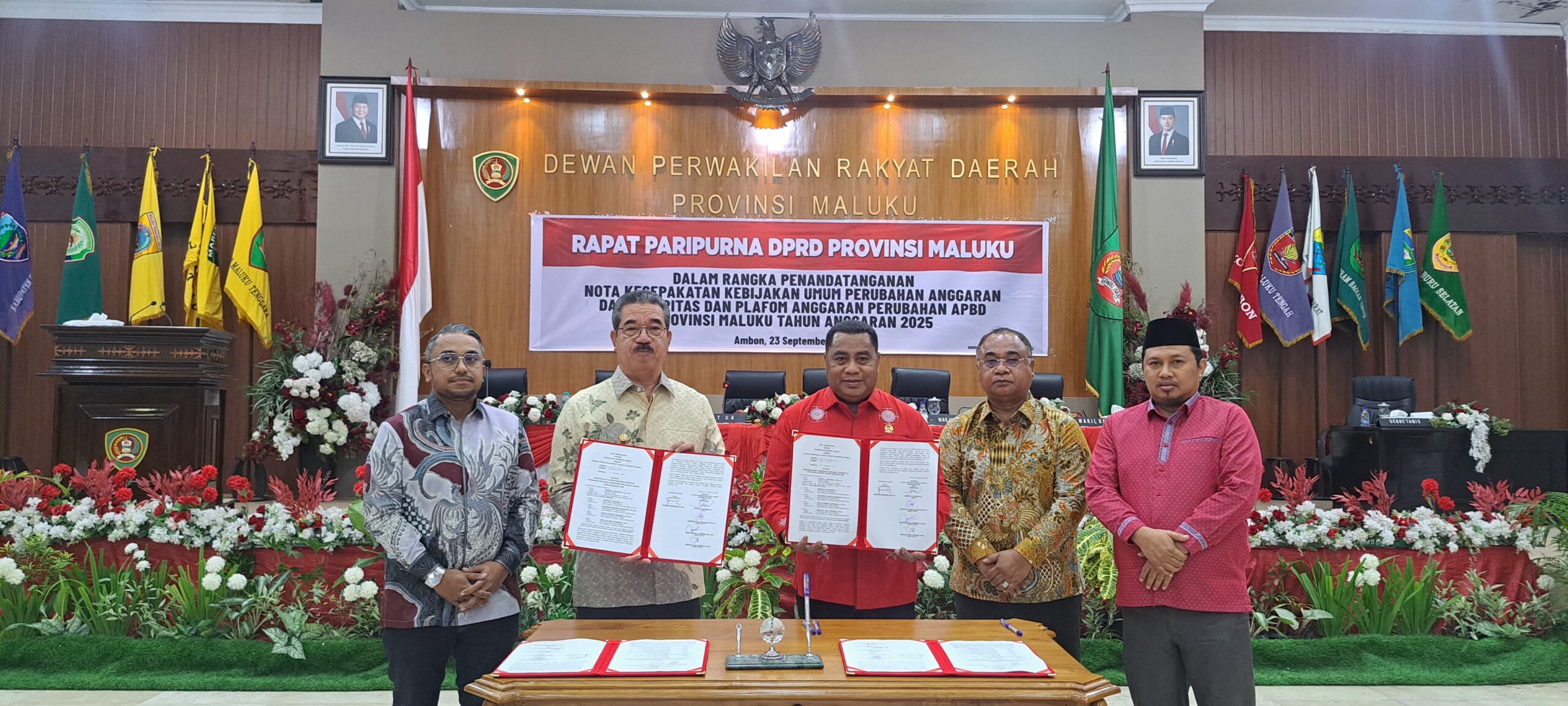 AMBON, DM.COM,-DPRD Provinsi Maluku, kembali mencatat sejarah penting dalam perjalanan tata kelola keuangan daerah. Betapa tidak, Gubernur Hendrik Lewerissa bersama Ketua DPRD Benhur Watubun resmi menandatangani nota kesepakatan Kebijakan Umum Perubahan Anggaran (KUPA) dan Prioritas Platform Anggaran Perubahan (PPAP) APBD Provinsi Maluku Tahun Anggaran 2025, Selasa (23/9/2025).