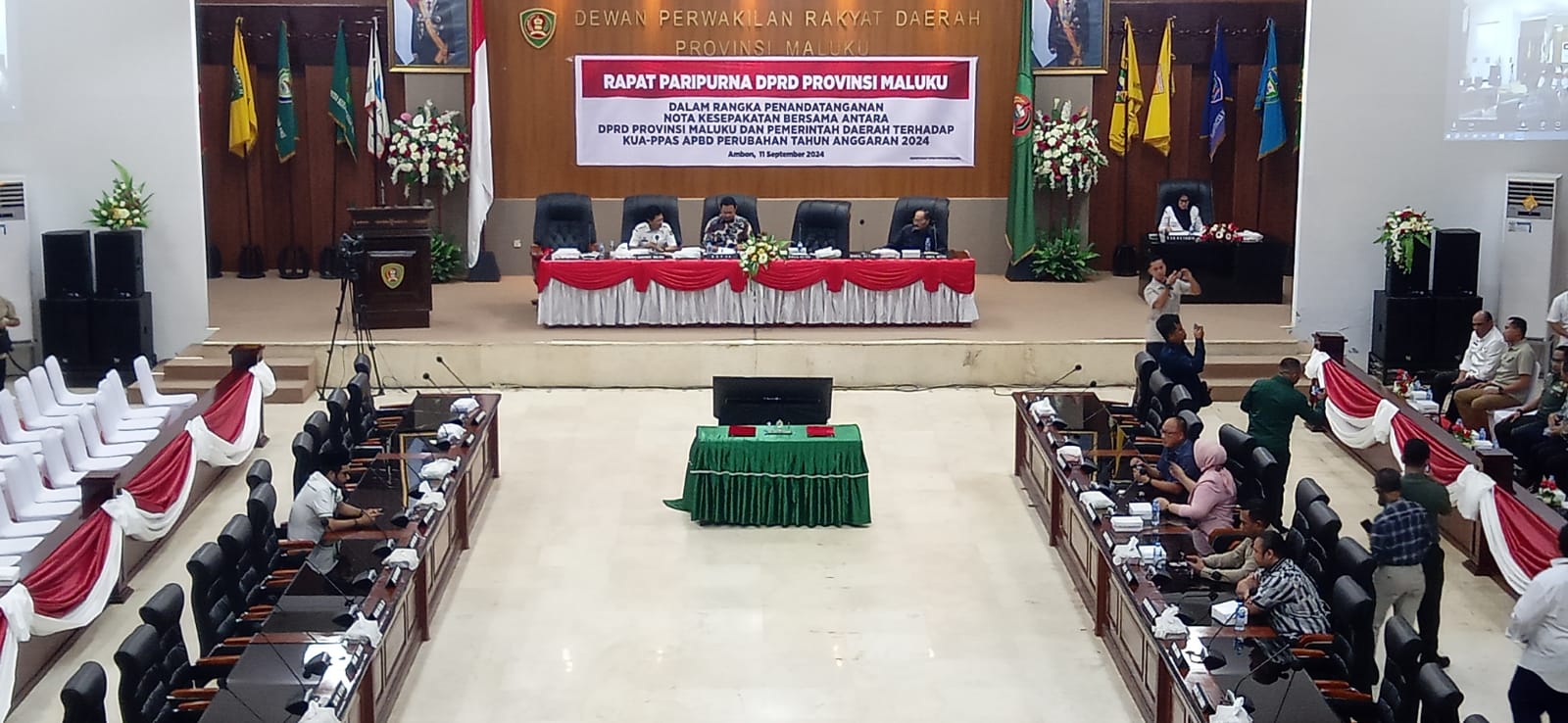 Nota kesepakatan yang ditandatangani oleh Penjabat Gubernur Maluku, Sadali Ie mewakili Pemprov Maluku, dan Wakil Ketua DPRD, Abdullah Asis Sangkala mewakili DPRD ini dilakukan, saat rapat paripurna dalam rangka penandatanganan nota kesepakatan bersama antara DPRD Provinsi Maluku dengan Pemerintah Daerah (Pemda) terhadap KUPA-PPAS Perubahan APBD Provinsi Maluku Tahun Anggaran 2025, yang berlangsung di ruang rapat paripurna, kantor DPRD setempat, Rabu (11/9/2024) malam.