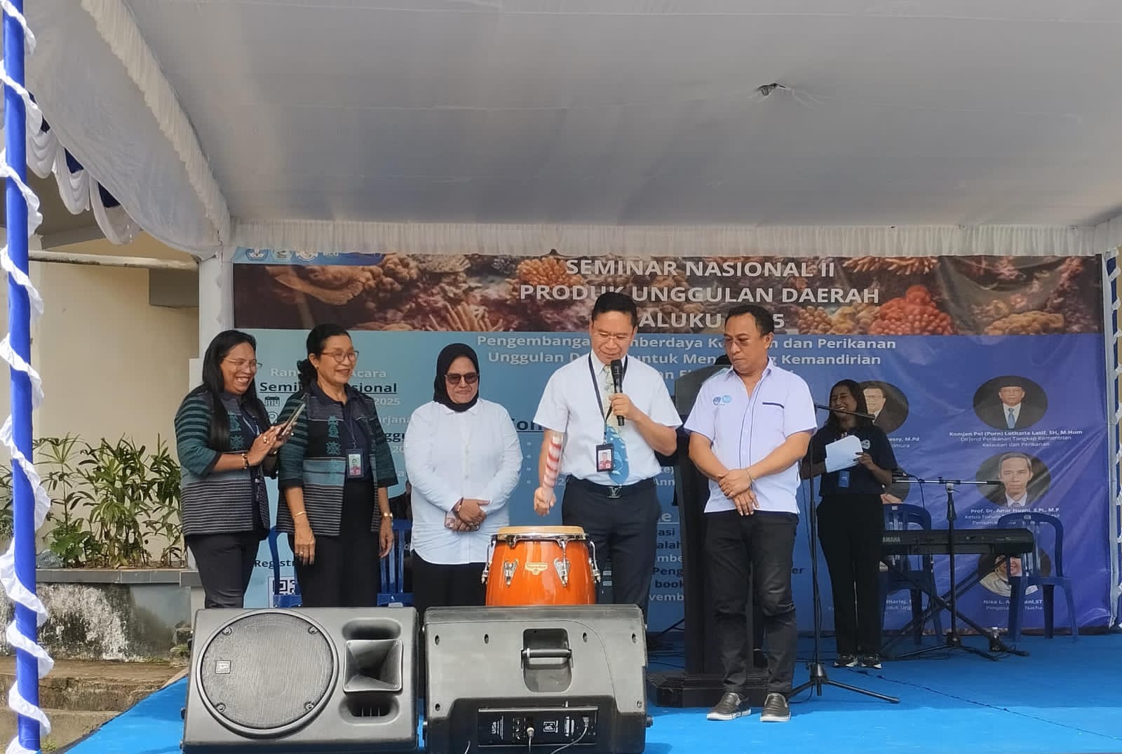 Wakil Rektor II Bidang Umum dan Keuangan Unpatti, Prof. Dr. Pieter Kakisina, S.Pd., M.Si., yang dalam sambutannya menegaskan pentingnya peran perguruan tinggi dalam mendorong kemandirian pangan dan penguatan sektor kelautan serta perikanan daerah.