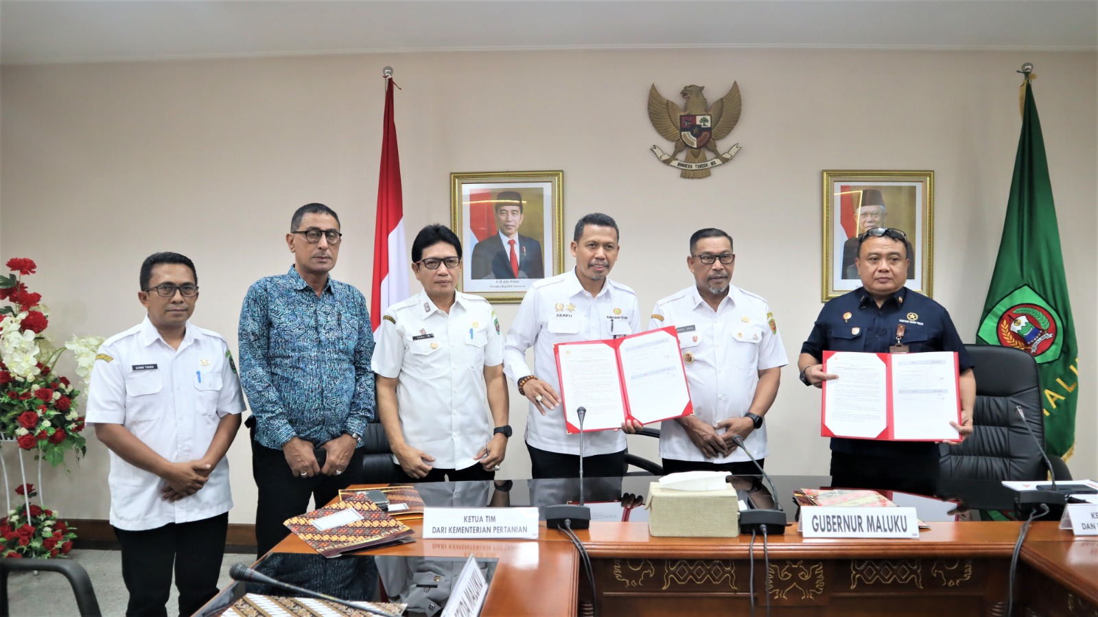 Kegiatan dilanjutkan dengan Diskusi dan Pendalaman uraian jasa Gubernur Maluku, dan Penandatanganan Berita Acara oleh Ketua Tim Sekretariat Militer Presiden, Ketua Tim Kementerian Pertanian RI, dan Pemerintah Provinsi Maluku diwakili oleh Sekretaris Daerah Maluku yang disaksikan oleh Gubernur Maluku. (DM-01)