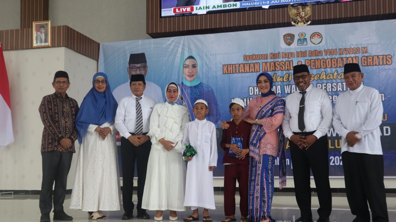AMBON,DM.COM- Mensyukuri Hari Raya Idul Adha 1444 H, Dharmawanita Persatuan Institut Agama Islam Negeri (IAIN) Ambon bersama Penasehat DWP Provinsi Maluku, menggelar Khitanan Massal dan Pengobatan Gratis. Kegiatan sosial itu digelar di kampus IAIN Ambon, Sabtu (1/7/2023).