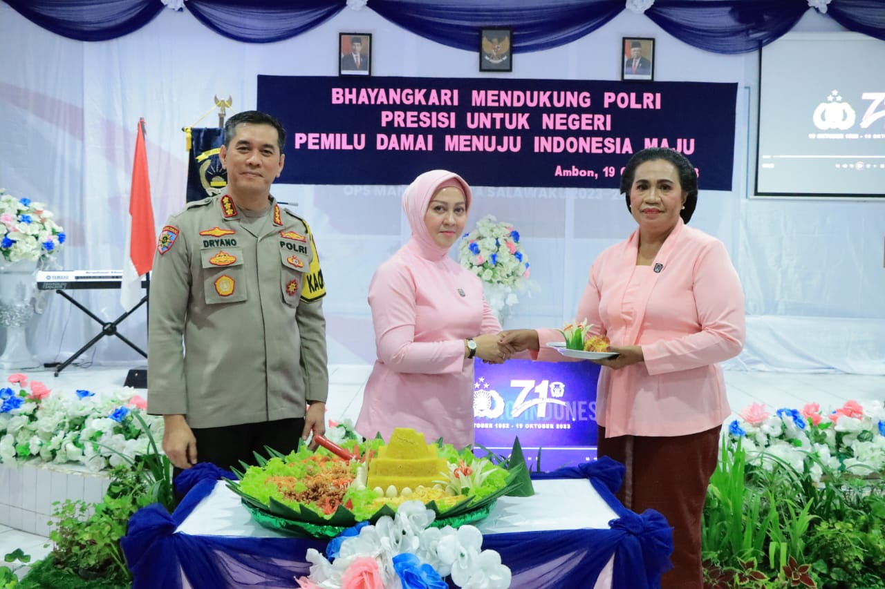 Ketua Bhayangkari Cabang Kota Pulau Ambon dan Pulau-pulau Lease, Ny Rosanti Driyano menghimbau kepada sesama anggota Bhayangkari untuk selalu menggelorakan semangat kebersamaan toleransi umat beragama dan berprestasi sehingga anggota bhayangkari menjadi pribadi yang unggul dan menghindari perilaku yang menyimpang yang dapat mencoreng nama organisasi.