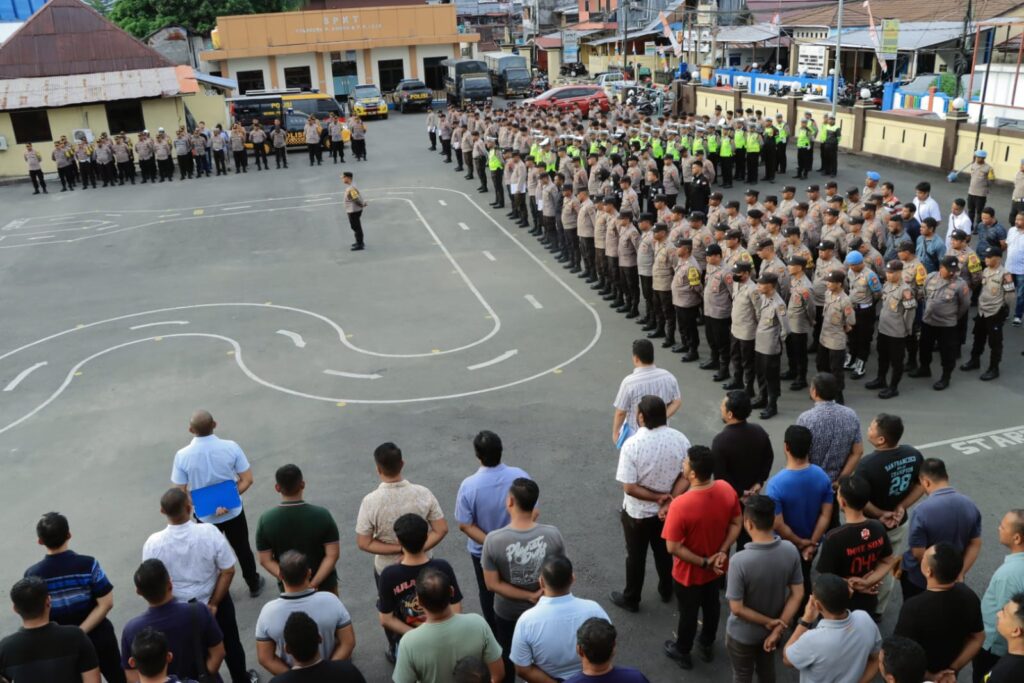 Apel pengecekan pengamanan dipimpin langsung oleh Kapolresta Pulau Ambon dan Pp Lease di Lapangan Upacara Polresta, Sabtu (13/1/2024).