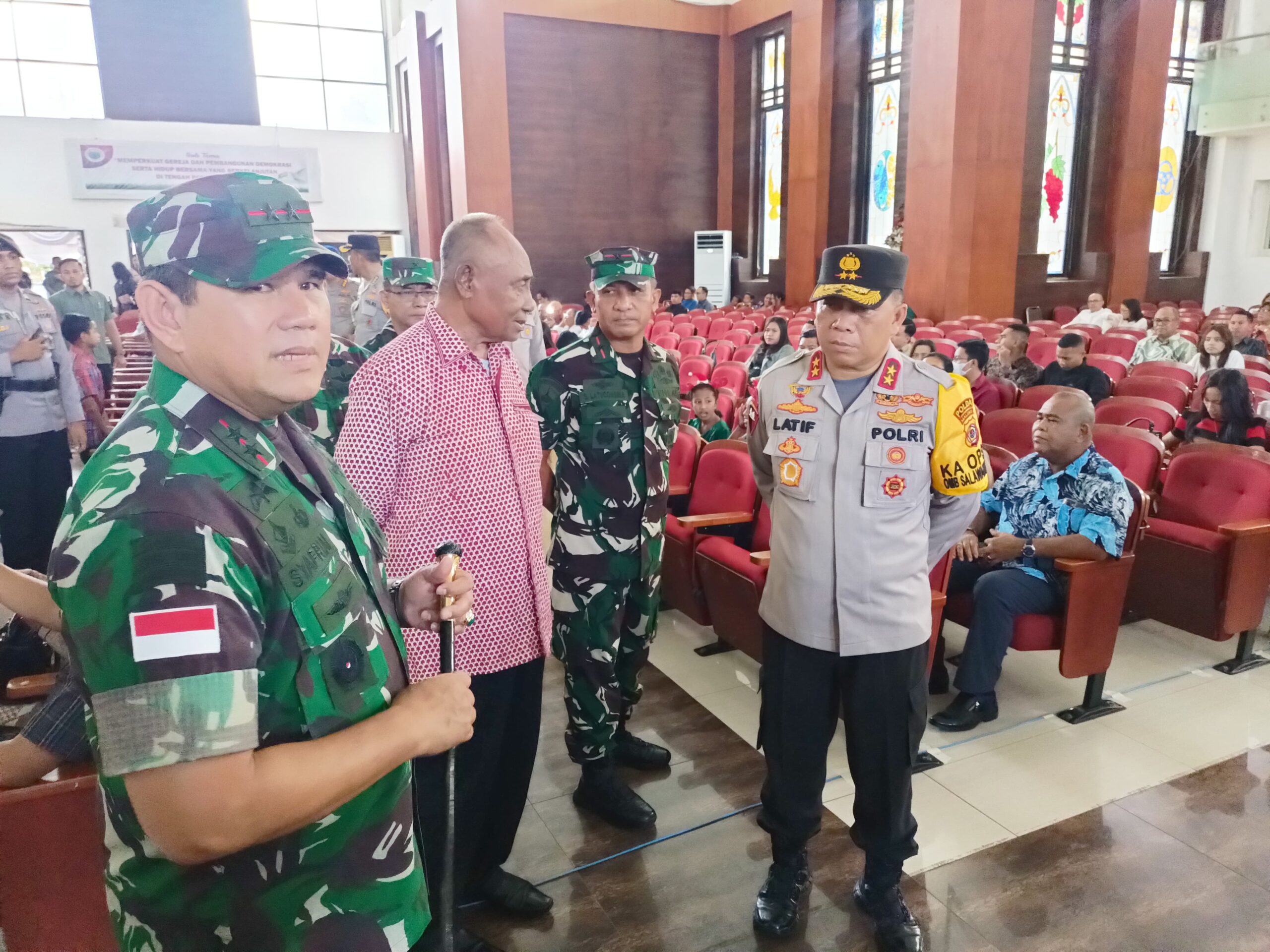 AMBON,DM.COM,-Kepala Kepolisian Daerah Maluku Irjen Pol Lotharia Latif, bersama Panglima Kodam XVI/Pattimura, Mayjen TNI Syafrial, meninjau secara langsung kesiapan pengamanan Ibadah Natal di sejumlah Gereja di kota Ambon, Minggu (24/12/2023).
