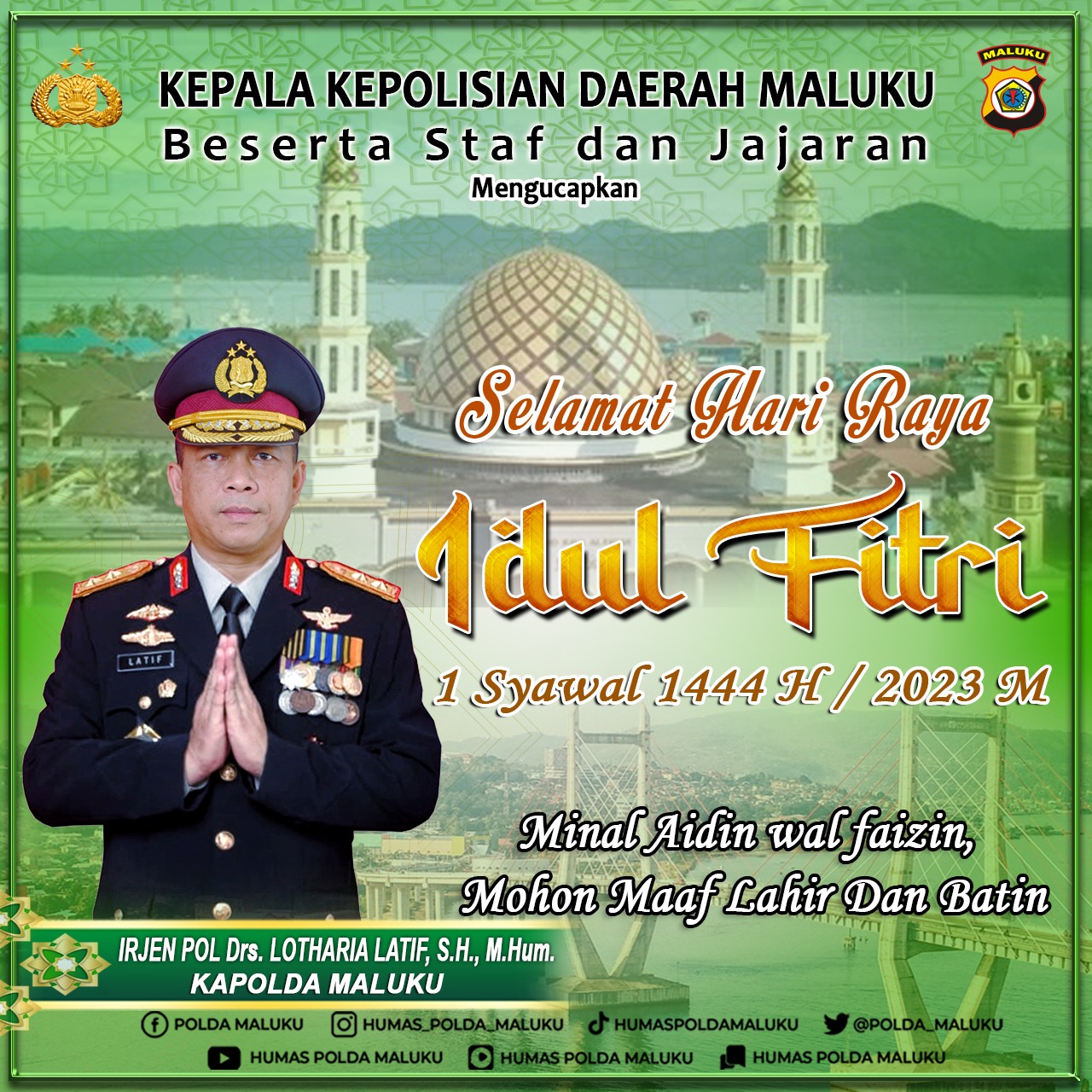 “Ada umat muslim yang telah merayakan Idul Fitri di Maluku. Saya menyampaikan selamat Idul Fitri 1444 Hijriah, Minal Aidin Walfaizin, Mohon Maaf Lahir dan Batin,” kata Kapolda usai keliling melakukan pengecekan situasi di Ambon, Jumat (21/4/2023) pagi tadi.