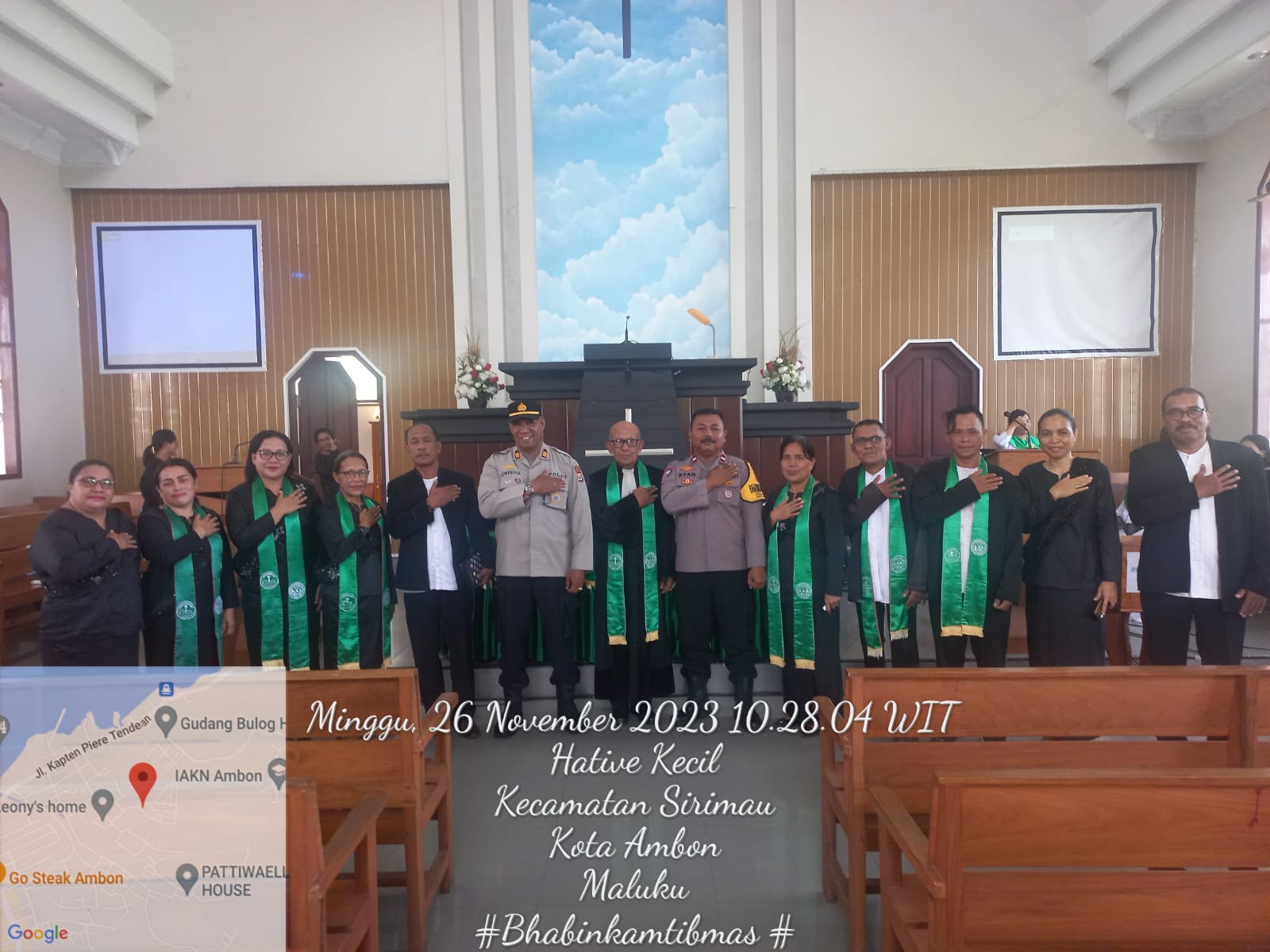 Ini setelah, Kapolsek Sirimau, AKP Sally Lewerissa, bersama Bhabinkamtibmas Desa Galala Aipda S. Riyanto dan 1 personel Polsek Sirimau lainnya menyapa warga Galala Hatiwe Kecil (Gatik) Kwc.Sirimau Kota Ambon lewat Program “Minggu Kasih” dalam Kebaktian Minggu pagi Jemaat GPM Gatik, Minggu (26/11/2023)