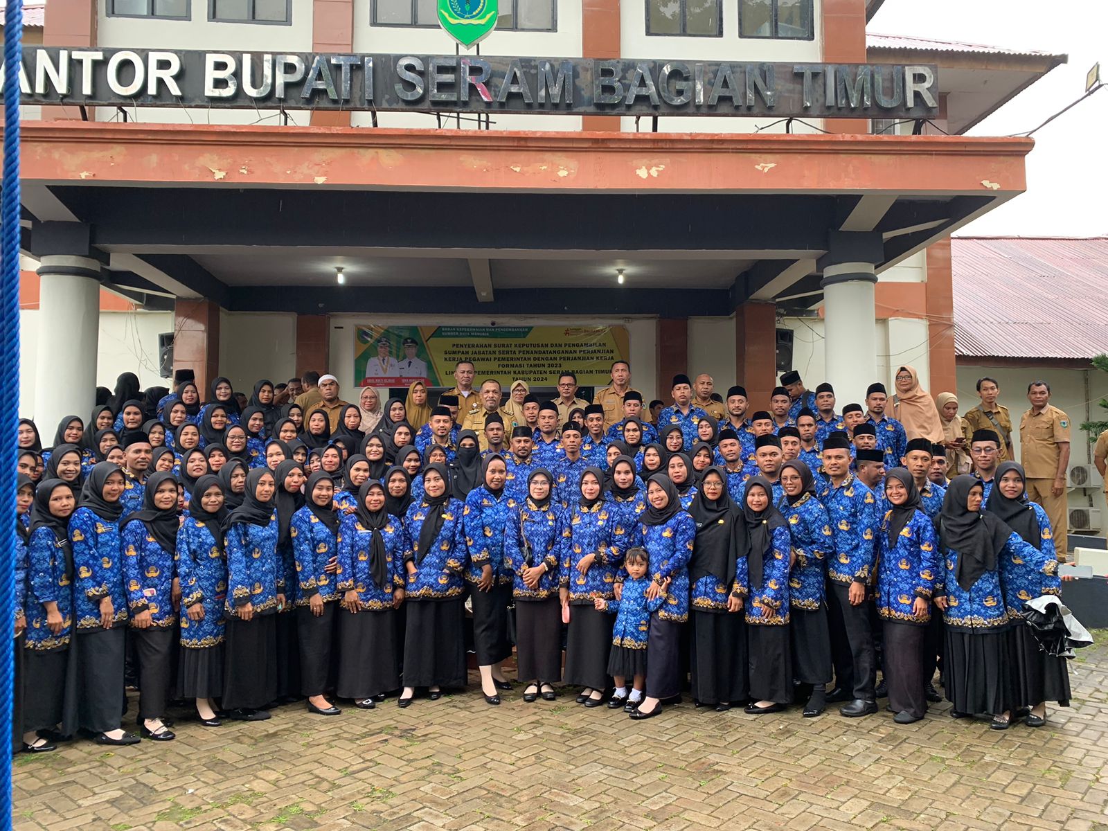 Penyerahan surat keputusan sekaligus pengambilan Sumpah Jabatan dan Penandatanganan Perjanjian Kerja 775 P3K dilingkup Pemerintah Kabupaten SBT dihadiri oleh Plt sekretaris daerah Mirnawati Derlen, Asisten 1 Bidang Pemerintahan dan Kesra, Ambo I. T. Wokanubun, Kepala Bagian Hukum, Mochtar Rumadan, Plt. Kepala Dinas Komunikasi dan Informatika M. Syukur Kilwarany dan Para Pimpinan OPD lainnya. (DM-04)