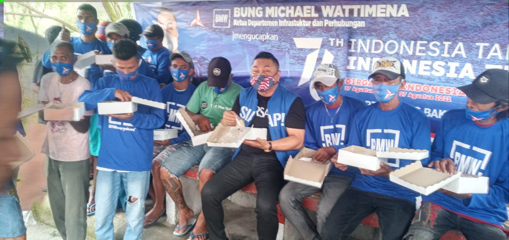 Kali ini Ketua DPP Partai Demokrat ini menyapa warga di Hatiwe Besar, Kecamatan Teluk Ambon, Kamis (2/9/2021). Disana, mantan anggota DPR RI dua periode (2009-2014 dan 2014-2019), menyapa warga yang berprofesi sebagai tukang Ojek. Selain bagi baju kaos, mantan Ketua DPP GAMKI itu makan siang bersama para tukang Ojek setempat. Wattimena yang akrab disapa Bung Michael Wattimena (BMW) memberikan bantuan dana untuk merenovasi pangkalan Ojek di kawasan itu.