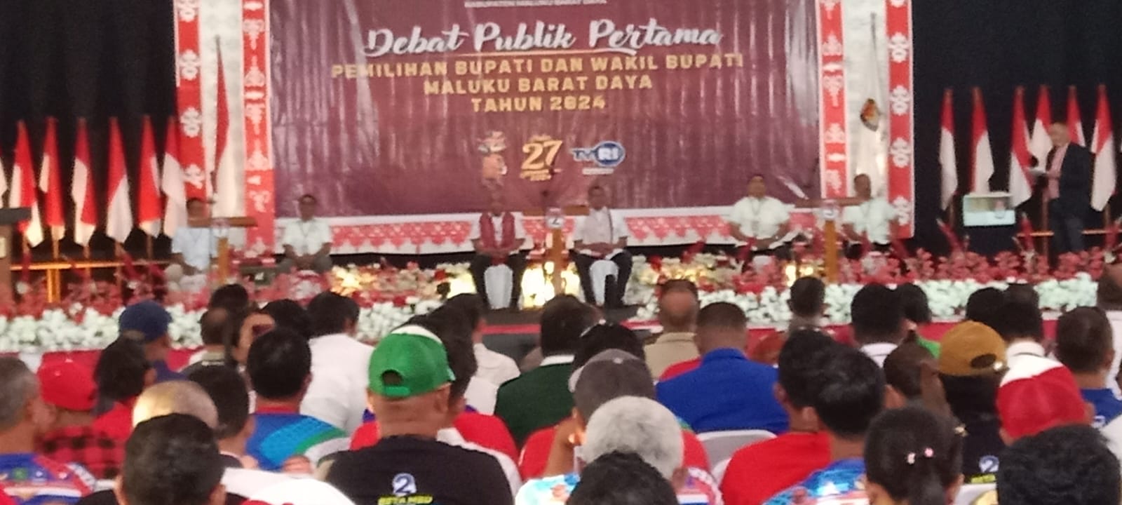 TIAKUR,DM.COM,-Guna menyebarkan program kerja pasangan calon bupati dan wakil bupati Maluku Barat Daya (MBD) yang bertarung dalam kontestasi pemilihan bupati dan wakil bupati MBD tahun 2024, Komisi Pemilihan Umum Daerah (KPUD) MBD menggelar debat antar pasangan calon (Paslon) seasion pertama.
