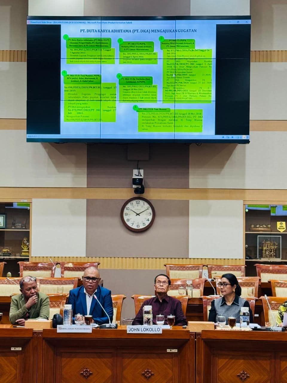 Pada kesempatan itu, para anggota Komisi III penasaran dengan video percakapan Fatlolon yang diduga dengan mantan Kajari KKT, Dadi Wahyudi. “Itu Kajarinya yang pakai topi gemuk di depan. Stafnya yang dibelakang,”sebut Pentury menjelaskan gambar di video.”Saya kenal dia orang Tanimbar Pak,”tandas Pentury.