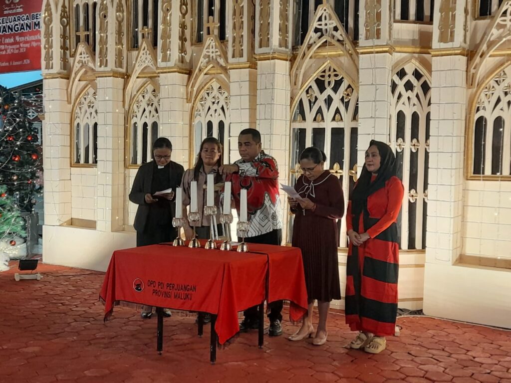 Sementara itu, pembakaran lilin Natal oleh Ketua DPD PDI Perjuangan Provinsi Maluku, Benhur George Watubun, Sekretaris DPD PDI Perjuangan Provinsi Maluku, Nanci Purmiasa, perwakilan pengurus DPD PDI Perjuangan Provinsi Maluku.