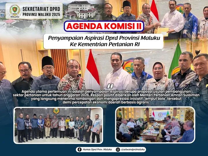 AMBON,DM.COM,-Komisi-komisi di DPRD Provinsi Maluku, pekan kemarin, melakukan penyampaian aspirasi masyarakat ke Pemerintah pusat. Komisi II DPRD Provinsi Maluku, misalnya dipimpin Wakil Ketua DPRD Provinsi Maluku,...