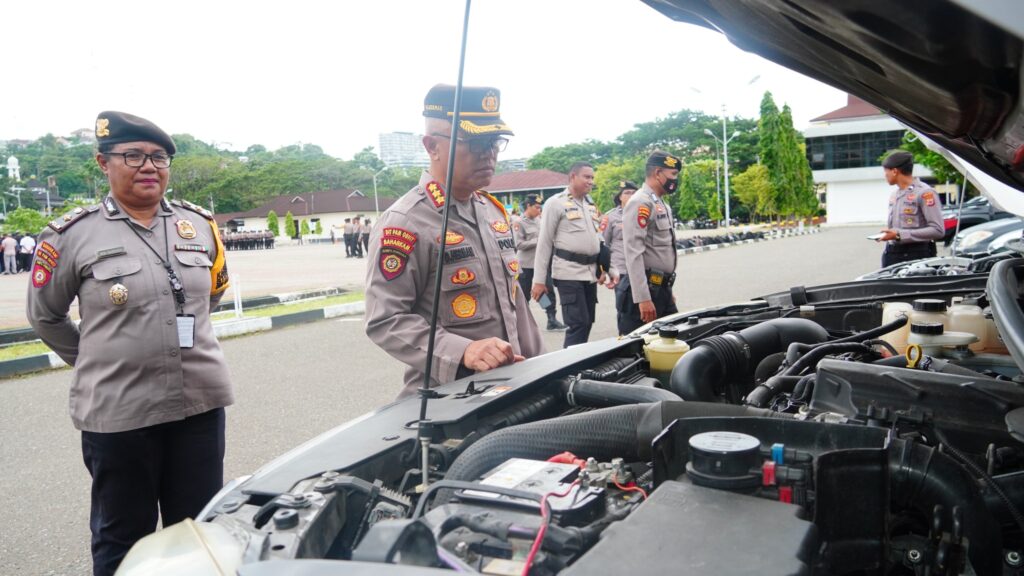 Selain memimpin apel, Kombes Wirdenis juga melakukan pengecekan terhadap perlengkapan yang akan digunakan personel seperti kendaraan taktis (rantis).