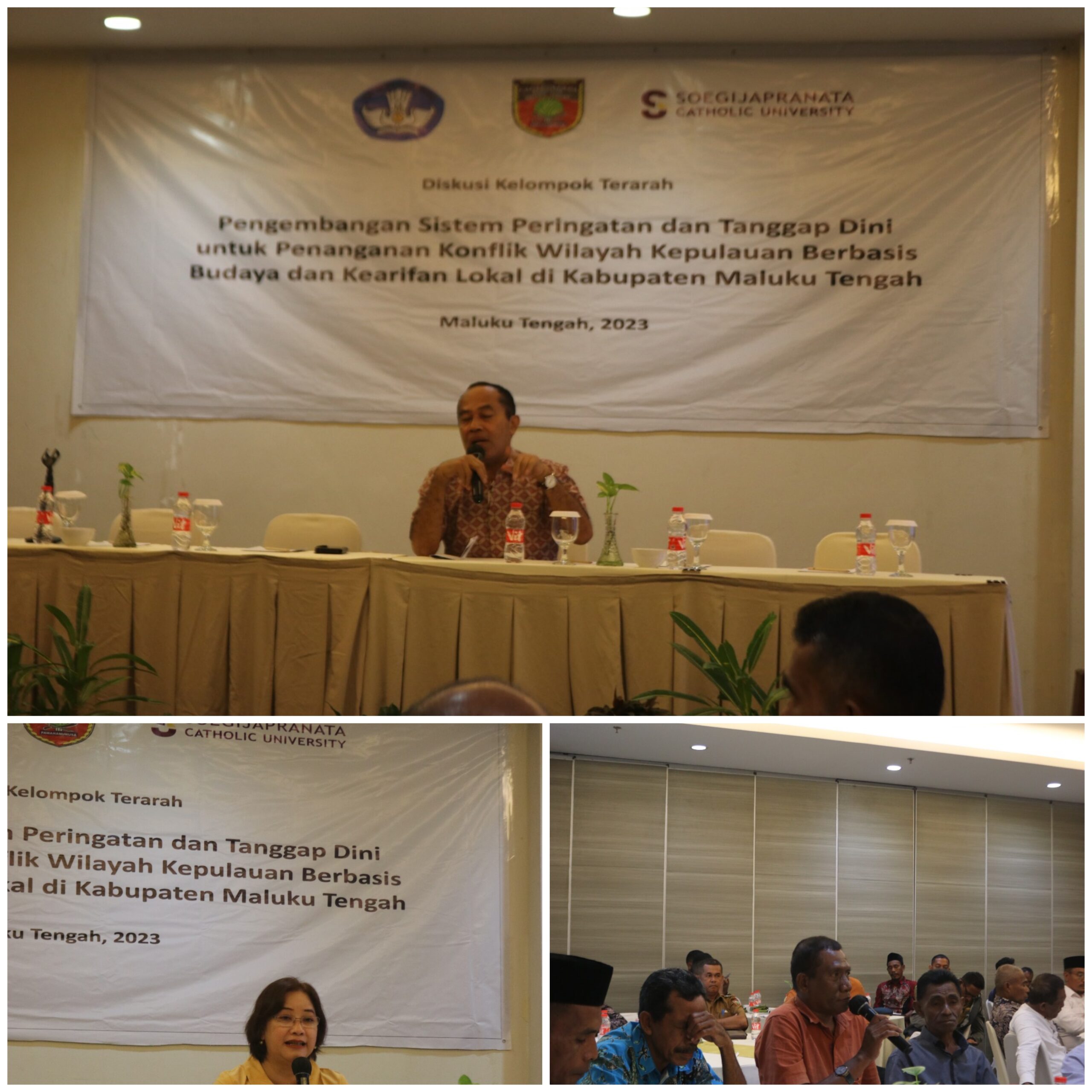 Buktinya, Pemkab Malteng bekerjasama dengan Soegijapranata Catholic University (SCU) melakukan program Pengembangan Sistem Peringatan dan Tanggal Dini untuk Penanganan Konflik Wilayah Kepulauan berbasis Budaya dan Kearifan Lokal.” Kerjasama yang dilakukan ini merupakan salah satu bentuk pengabdian yang dilakukan oleh SCU ke daerah Timur Indonesia,”kata Dr. Trihoni Nalesti Dewi SH, Ketua LPM Universitas Katolik Soegijapranata, ketika melakukan diskusi kelompok terarah di Hotel Amaris Ambon, Selasa (10/10/2023).