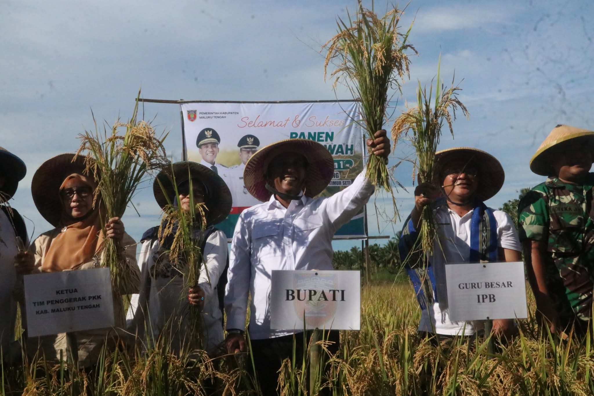 Pada kesempatan itu, Kepala Dinas Tanaman Pangan dan Hortikultura Kabupaten Malteng Arsad Slama menyampaikan kegiatan Panen Raya Padi Sawah pada MT 1 ini merupakan dukungan Pemda Malteng dalam mewujudkan Asta Cita Presiden RI terkait upaya swasembada pangan dan Luas Tambah Tanam (LTT).