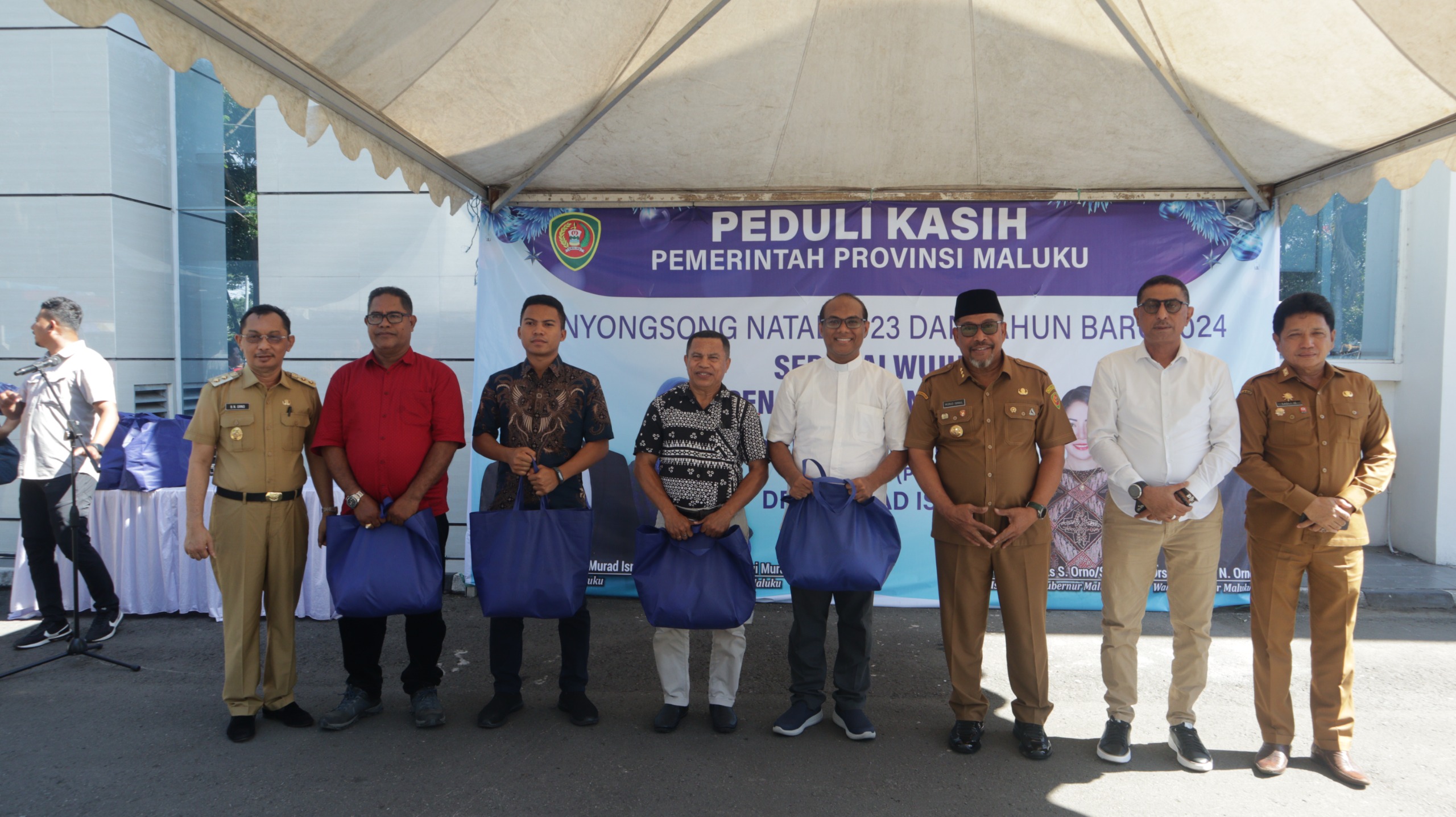 Penyaluran paket sembako berdasarkan Surat Edaran Gubernur Maluku Nomor 500.1/2959/2023 tanggal 27 November 2023 tentang Antisipasi Kenaikan Harga Kebutuhan Pokok Menghadapi HBKN Natal dan Tahun Baru 2023-2024, maka Pemerintah Daerah melaksanakan Peduli Kasih Maluku, di Depan Kantor Gubernur Maluku, pada Selasa (19/12/2023).
